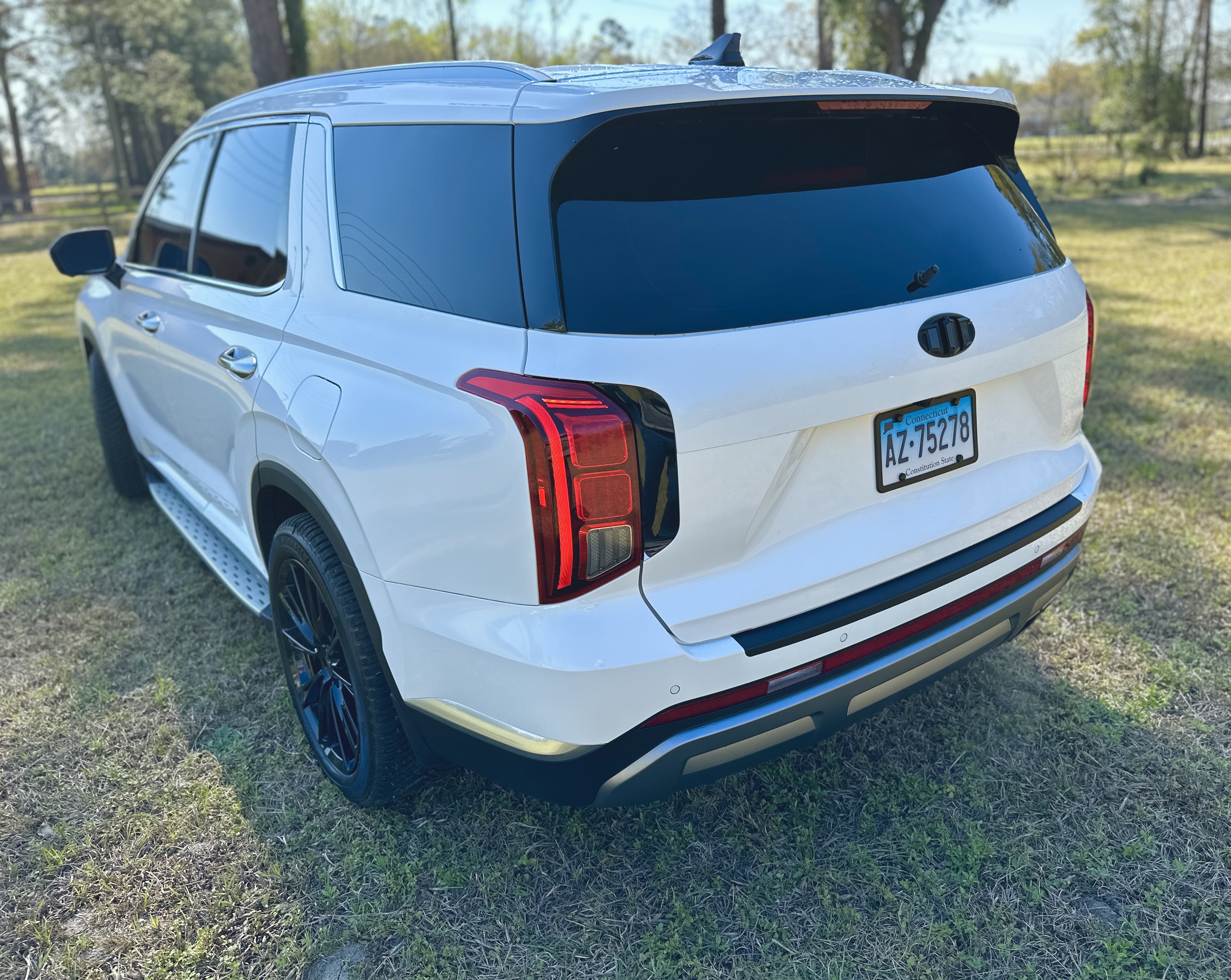 Left rear, tint, running boards, custom wheels, painted calipers, de-badged, updated emblem and delete rear wiper.